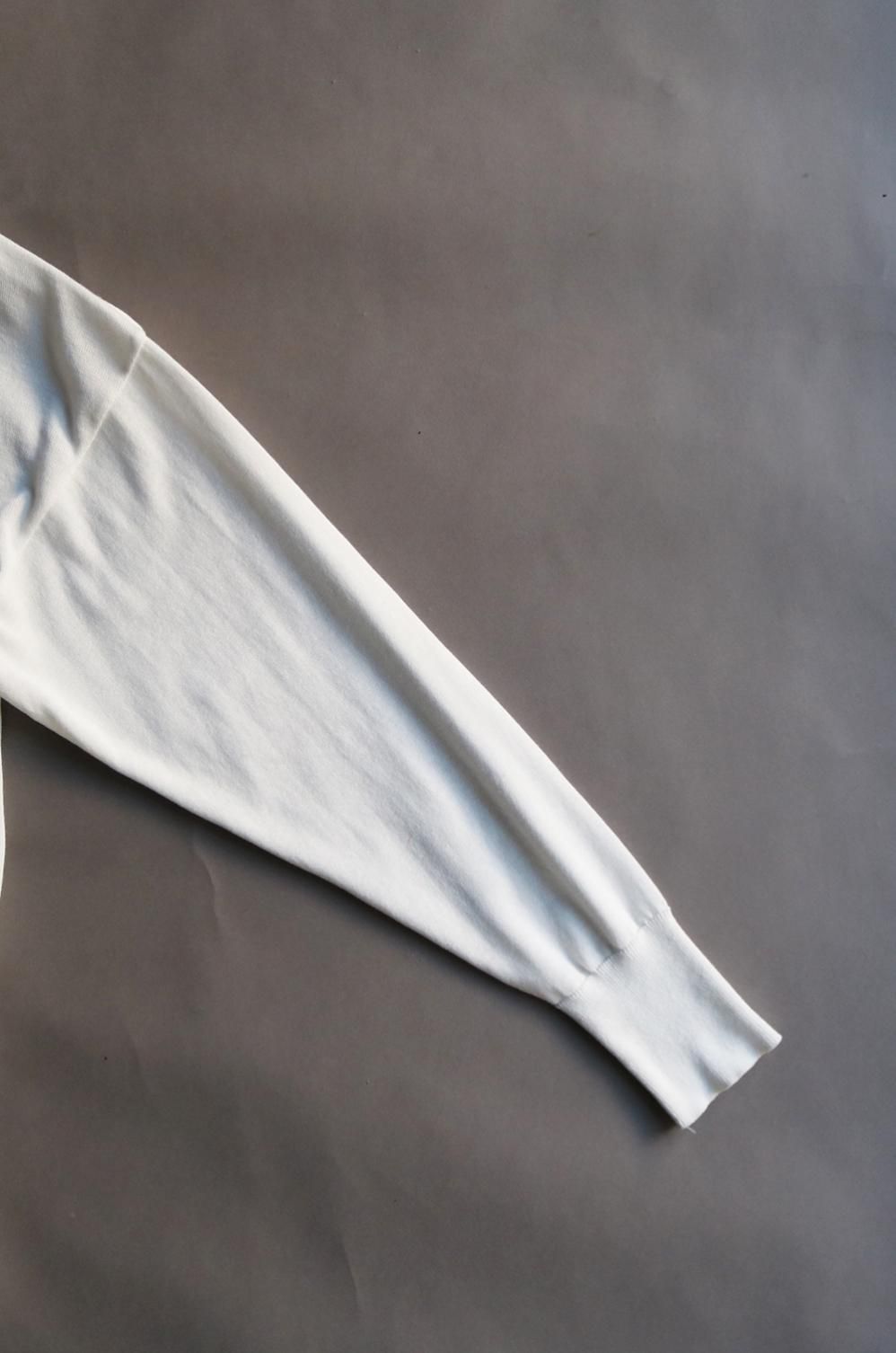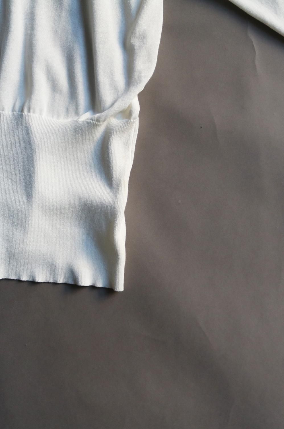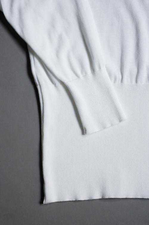 綿糸で編み立てたニットは、脇周りのストレスをなくす寸法設定で、